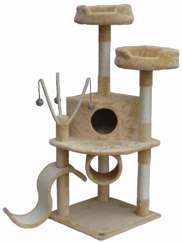 -57%Color Beige Overall Size 38-inch W/30-inch L/55-inch H Base Board Size 21-1/2-inch W/21-1/2-inch L Size of Condo 19-inch W/15-inch L/10-1/2-inch H Size of 2 Top Beds 13-inch Dia/4-inch H, 3 Hanging Balls Ramp Scratching Board Size 8-inch W/20-inch L (Sisal Fabric) Posts covered by natural sisal rope Covering Material Fau/Fur Board Material Pressed Wood Easy to assemble with step by step instruction and tools included.