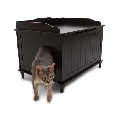 Now you don’t have to compromise! The Designer Catbox is a perfect solution to help keep your litter box concealed, but easily accessible to your cats. This elegant piece of furniture is a stylish addition to any home, and also helps to minimize odor and prevent litter from being kicked out onto the floor. Made with high quality wood pieces, the Designer Catbox is painted with non-toxic, lead-free paint with a glossy finish and is a fully functional cat litter box with storage for your litter accessories. The litter pan, litter scoop and other accessories are completely hidden from family and guests. The Designer Catbox is designed to hold a standard large-sized litter pan that is 18-1/2-inch L by 15-1/4-inch W by 5-1/4-inch H or a high-backed litter pan that is 18.6-inch L by 14.7-inch W by 9.8-inch H. Note: a larger litter pan will fit in the Designer Catbox if you do not install the interior panel. The size of the Designer Catbox: 29.1-inch length by 20.6-inch width by 20.8-inch height. The cat entrance holes are 7-1/2-inch wide by 8-inch high to fit large cats. The interior dimensions of Designer Catbox are: 26.4-inch length by 18-1/2-inch width by 14.2-inch height. The Designer Catbox is easily assembled and comes with detailed instructions. For setup, you will need a Phillip’s head screwdriver.