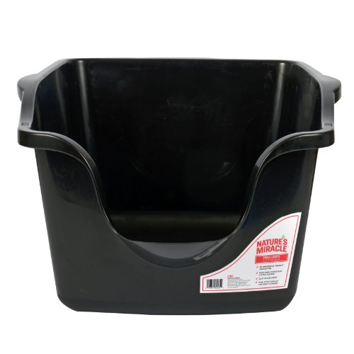 Nature’s miracle high sided litter box is designed for larger cats or multicat households. The box has high sides to prevent litter from scattering, and a non-stick surface for easy cleaning.