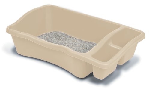 Petmate’s Giant Litter Pans offer a great solution for large or multiple cats. Large size and high walls contain waste, and built-in storage compartments hold cleaning supplies. This box can hold over 30 lbs. of litter for less frequent changes.