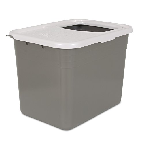 Attached lid makes clean up easier Non-slip texture on lid Special grating on lid flows litter scatter back in to the pan when opened Built in handles allow for easy moving and pouring out old litter Molded in hook for litter scoop storage Perfect for PM’s Ultimate Litter Scoop.
