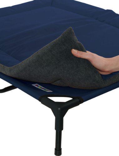 The All Seasons mat is designed for use with the Kakadu Pet Cot or simply on its own in a crate, in the house or outdoors. Its reverisble design has canvas on one side for extra padded comfort during the warmer months and cozy fleece to curl up on during the cooler months. Its unique design has hidden ties which snap fast around the legs of the Pet Cot. If you choose to use it on its own then simply keep the ties hidden. Machine washable or simple hose down and lay flat to dry. Measuring 36″x 30″, it’s suitable for large breeds such as Boxers, Labradors and German Short Haired Pointers.