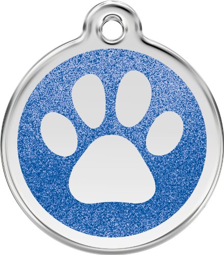 Red Dingo Stainless Steel & Glitter Enamel Paw Print Dog ID Tag (Dark Blue, Large)