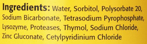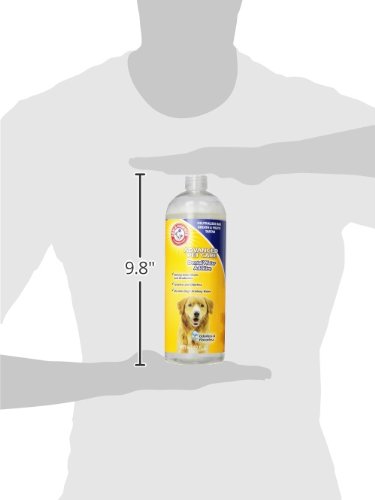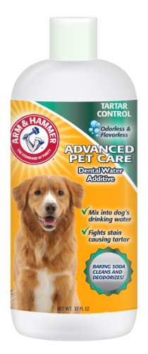Cleans and deodorizes with the power of baking soda. The Arm & Hammer name has been trusted for over 100 years for gentle yet effective cleaning. We now offer Arm & Hammer dental products for your dog to safely clean and maintain healthy teeth! Product Detail: This odorless/flavorless dental water additive helps prevent tartar buildup and bad breath, keeping your dog’s teeth in top form. Baking soda cleans and deodorizes Kills bad breath for up to 24 hours. Directions: Add one capful per 8 oz. of your dog’s drinking water every time you refill the bowl. Ingredients: Water, Sorbitol, Polysorbate 20, Sodium Bicarbonate, Tetra sodium Pyrophosphate, Lysozyme, Proteases, Thymol, Sodium Chloride, Zinc Gluconate, Cetylpyridinium Chloride. Warning: Avoid contact with eyes. Keep out of reach of children. Store at room temperature. Not intended for human use.