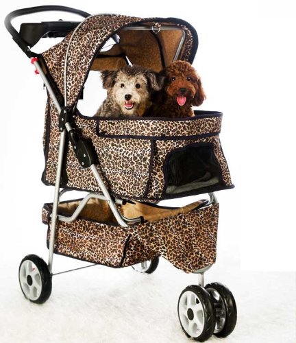 All Terrain Extra Wide Leopard Skin 3 Wheels Pet Dog Cat Stroller w/RainCover
