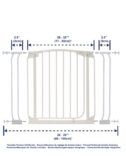 • Includes two 3.5″ extensions which will allow gate to fit an opening from 28″ – 39″