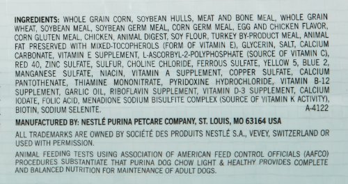 Crunchy and tender textures, with real chicken, help make it delicious. 20% fewer calories than Purina Dog Chow Complete & Balanced make it a calorie-light way to help your adult dog maintain a healthy weight.