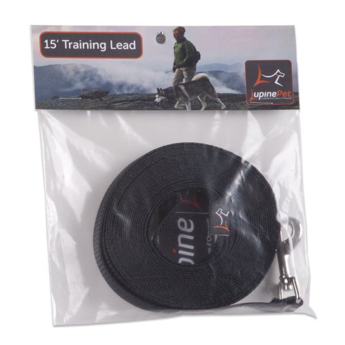 1/2-inch wide training leads are suitable for small to medium sizes of dogs. Features a 7-1/4 inch self-loop handle with strong bar-tack stitching and convenient trigger snap. Use to practice ‘stay’ and ‘come’, or just give your pup the ability to range 15′ or 30′ out on walks. Lupine products are not recommended for tie-out. Available in six solid colors, all with matching collars, leashes and harnesses. All Lupine products are proudly built in Conway, New Hampshire and Guaranteed (Even if Chewed). Made from woven nylon. Machine wash, warm water, mild soap (no bleach or bleach alternative). Air dry.