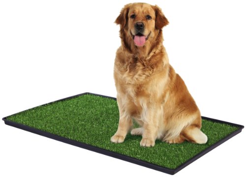 Prevue pet products tinkle turf system 502 for large size dog breeds creates a designated potty area for your pet – perfect for when going outdoors is not an option. Tinkle turf protects floors and furniture, makes an ideal training tool for young pups and is easily transportable when traveling with your pet, great for dog and owner alike. Ideal for travel, city living, busy schedules or anytime going outdoors is not an option, tinkle turf features a lightweight and portable tray that can be used both indoors and outdoors. The tinkle turf tray has been created with convenience in mind – designed with a low profile it is easy for both small pups and older dogs to step onto, and a sturdy outer lip allows for easy pick-up while ridges in the tray base channel liquids away from the synthetic grass. Tinkle turf’s synthetic grass is certified lead-free and protected with antimicrobial odor control. Soft, realistic quality turf is 1/2-inch in height and constructed with a flow-through backing material, allowing liquid to drain into the tray base. A convenient dog potty that is easy to clean, tinkle turf 502 measures 41-1/4-inch long, 28-5/8-inch wide and 1-1/4-inch deep. Do not useharsh detergents or cleaners for turf. Hand wash or brush with warm water and mild dish washing liquid, and rinse thoroughly. Let turf air dry fully before replacing in tray. Turf is not machine washable. Do not place turf in washing machine or dryer. Consider the purchase of a replacement turf to use while the primary turf is being cleaned/dried.