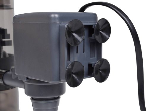 Quiet operation will have no noise to the fishes, corals or other aquatics Upper chamber detachable for frequent cleaning and maintenance Suction cups with oscula on both pump and skimmer 2 curved foam outlets help release foam faster Suitable for aquarium : 1m~1.2m