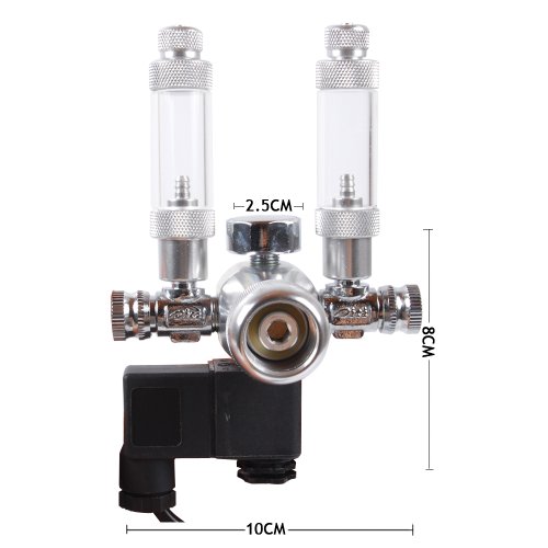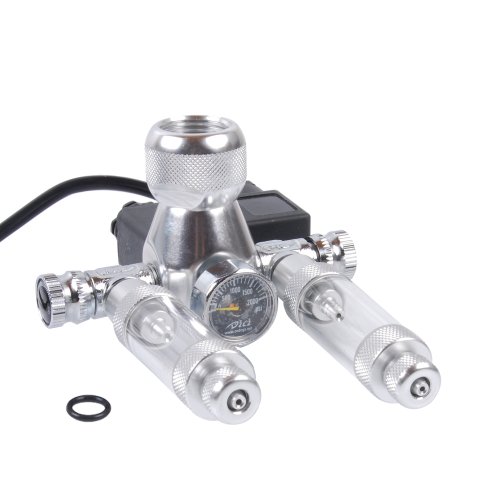 Compatible with various size of CO2 Cylinders (from 12 oz to 20-lb). Two adjustable Co2 Outlets for 4mm inner diameter tubing.