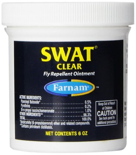 Swat 12302 fly repellent ointment for wounds and sores can be used on horses, ponies and dogs. Apply it to existing fly bites and sores to keep flies away while the skin heals. Ideal for use on ears and face. Swat ointment kills flies on contact and keeps them from messing with wounds while its healing properties help wounds heal faster.