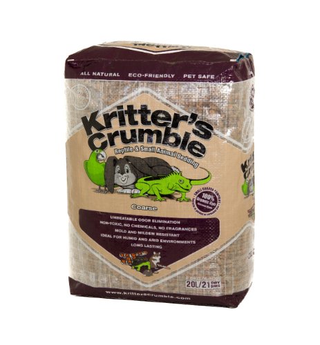 Kritter’s Crumble All Natural Coconut Husk Fiber Reptile Substrate and Small Animal Bedding is super absorbent with amazing, unbeatable odor elimination. Made of coconut husk (coir), a 100 percent organic, renewable and sustainable resource, Kritter’s Crumble contains no oils, fragrances, chemicals, or anything harmful. It is pet safe and has a soft, earth-like texture that pets instinctually prefer. Kritter’s Crumble is naturally structured of millions of leach resistant micro-sponges that absorb moisture and trap odors, holding more than four times its weight in liquid, ideal for arid or humid environments. Used Kritter’s Crumble (with reptile solids removed) is a valuable resource with the properties of a peat moss and serves as an excellent soil conditioner, compost additive, or may be placed in the green waste bin for municipal recycling; the presence of small animal and bird droppings creates an organic fertilizer! Kritter’s Crumble has a small carbon footprint (paw print) – it involves no cutting down trees, no mining the earth, and no crop production, which are all significant greenhouse gas contributors. Excellent for use with all small animals, reptiles, amphibians, arthropods, arachnids and bird cages.