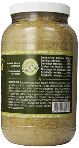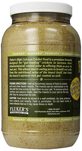 Fluker’s high calcium cricket feed is a premium formula designed for gut-loading crickets to increase their vitamin/mineral content prior to offering them as prey to your pet. This allows insect-eating pets to benefit not only from the nutritional value of the insect itself, but from the insect’s nutrient-gut content as well. Comes in 6-pounds jar.