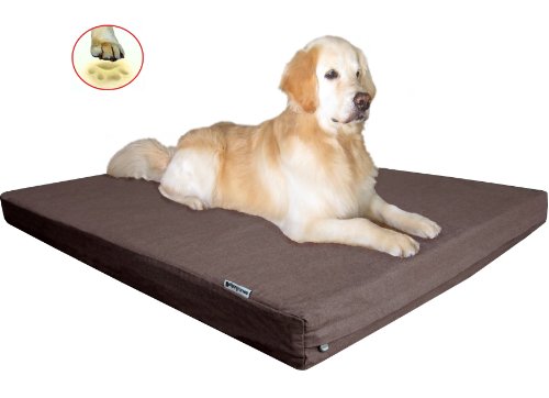 Heavy Duty Large Waterproof Orthopedic Memory Foam Pet Dog Bed with Denim Brown Cover + Free Bonus Case 41″X27″