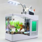 Mini USB LCD Desktop Lamp Light Fish Tank Aquarium LED Clock white + 1bag stone + a USB cable + 1 water plant,USB Desktop Aquarium Small fish tank