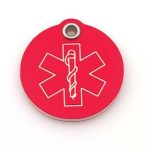 Pet ID Tag - Medical Alert - Custom engraved dog & cat tag features medical symbol. Available in 3 sizes.