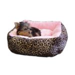 Anima Pink Ultra Plush Leopard Print Bed with Removable Pillow, 16 by 16 by 5.5-Inch