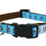 Sassy Dog Wear 10-14-Inch Blue/Brown Puppy Paws Dog Collar, Small
