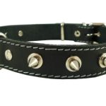 Real Leather Black Spiked Dog Collar Spikes, 1" Wide. Fits 14"-17" Neck, Medium Breeds.