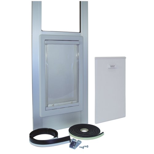 2 pieces join together to make a standard size patio panel pet door for aluminum sliders