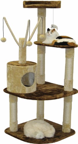 Color : Beige/Brown Overall Size : 28″W x 26″L x 60″H Base Board Size : 21.5″W x 21.5″L Size of Condo House : 11″Dia x 12″H Size of Top Bed: 14″Dia x 3″H 3 Hanging Balls Posts covered by natural sisal rope Covering Material : Faux Fur Board Material : Wood Easy to assemble with step by step instruction and tools included.