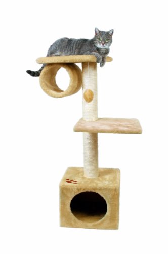 The San Fernando Cat Tree will provide endless opportunities for cats to play, explore, scratch or just relax. Felines can sharpen their claws on the scratching posts instead of on your furniture or carpet, giving them a healthy outlet for their scratching instincts. All posts are covered in durable sisal. If a nap or place to hide is in order, the cat can crawl inside the kitty condo base or rest with a view inside the penthouse tunnel. Both are covered with plush inside and out, making them the perfect cozy retreat. Feeling a little spunky? Jump, climb or perch atop one of two plush covered platforms and lie in wait for unsuspecting prey to pass by or simply enjoy the view. We’ve also included a dangling pom-pom toy that is sure to peak your playful little cat’s interest. Suitable for cats of all ages and activity levels. Assembly required. One year warranty. Dimensions (inches): 14 x 14 x 42; posts 3.5 diameter; condo 14 x 14 x 11; platform and hammock 14 x 14; tunnel 9 diameter. Weight: 20 pounds.