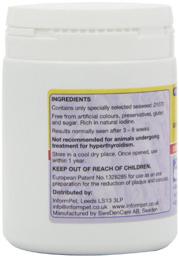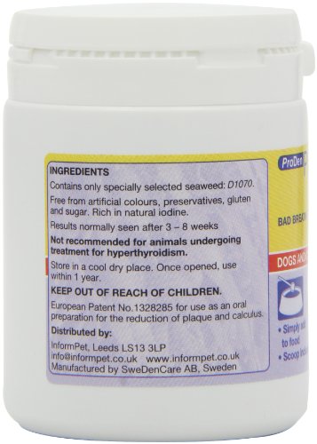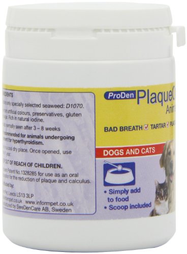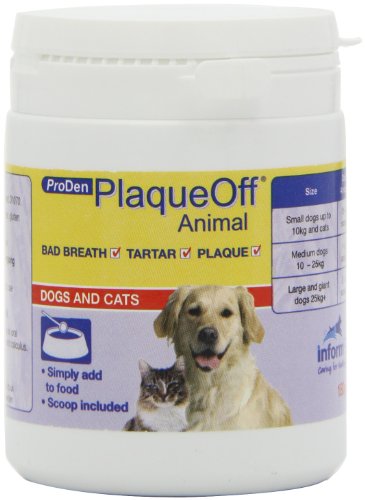 Proden plaqueoff animal is an easy way for those dog and cat owners to care for their pet’s teeth who don’t have the patience or inclination to brush their dog or cat’s teeth regularly. The product comes in powdered form and it is simply added on a daily basis to dry or wet food. Dogs and cats like the taste of the small amount that is added. Proden plaqueoff animal does not rely on topical application or friction. The product is ingested and works systemically. The natural compound in the product comes out through the saliva and works to break down the bacterial biofilm that forms on the teeth and gums. This is how the natural bacteria in the mouth take hold onto the teeth and gums, colonizing and creating the oral problems of plaque and tartar, bad breathe and gingivitis. It does not change the ph of the mouth or kill off the normal levels of bacteria. Proden plaqueoff has been proven to reduce plaque and tartar on the teeth and gums, depending on composition, diet and how long it has been there. It then works to prevent bad breath, plaque and tartar from returning. Patients generally begin to see results over a 2-8 week period, and will see further benefits with continued use. Proden plaqueoff animal is made from a specific strain of selected seaweed harvested from above scandinavia. This seaweed has developed a natural defensive mechanism against bacterial biofilm. The product is made only from this seaweed and has no additives or chemicals added. It is human grade and human tested.