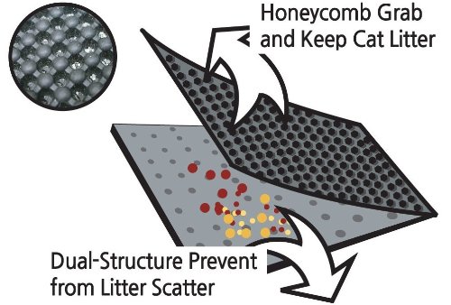 The round-shaped upper mat meets the footprints of your cat softly with taking the dirt down to the lower mat. Then fallen litters remain on the lower mat stably