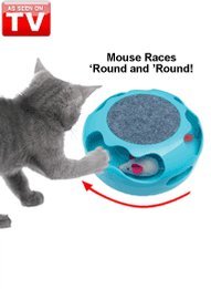-36%LED lights up, and mouse runs around the track when cat approaches