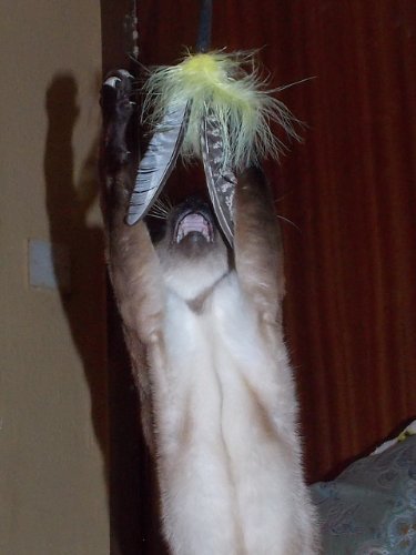 Flying Frenzy spins through the air simulating a flying bird and for your cat look and sound like the real thing!