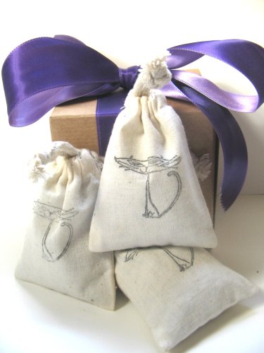 Certified organic catnip toys for your cat or for friends with cats. A great gift. Stuffed muslin bags, decorated with permanent ink, will not come off.