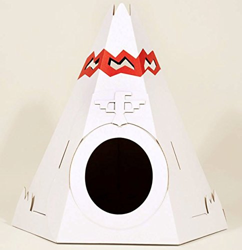 Foldable carboard play house for cats! — The Teepee playhouse provides a more grown up place for your feline friends to fall asleep. With a design based on adventure and pioneering spirit, this playhouse will strive to bring your favourite house cat a sense of excitement to their daily lives. — Mostly, they will enjoy having a private place to snooze and playing with the little balls and toys which come as an added extra with this cat playhouse. — Ideal for other small pets and rabbits too! — Suck UK’s cat playhomes are available in a number of other designs: Cat Cabin, Catillac, Plane, Tank, Fire Engine