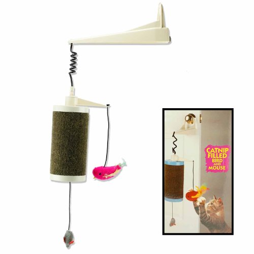 Give your cat hours of fun with this interactive toy that hides easily behind door