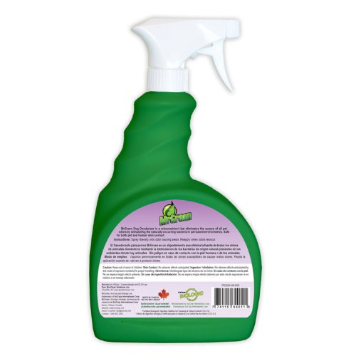 MrGreen Dog Deodorizer is 2 products in 1, eliminating airborne odors and attacking the source of the odor as well. MrGreen can be applied anywhere in your home where odor is present and can even be used directly on your dog to extend time between baths. MrGreen is non-toxic, biodegradable and does not contain chemicals, bacteria or enzymes.