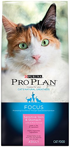 Purina Pro Plan Dry Cat Food, Focus, Adult Sensitive Skin and Stomach Lamb and Rice Formula, 16-Pound Bag, Pack of 1