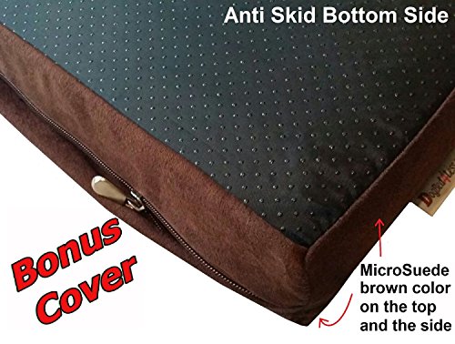 To select the correct bed size, please measure the body length from base of tail to tip of nose and then add 5″ to 7″. Larger bed at XL, XXL or XXXL size, additional color in Denim blue/brown, Canvas green and suede replacement cover or sizes are available at our storefront by clicking on dogbed4less link next to the title.