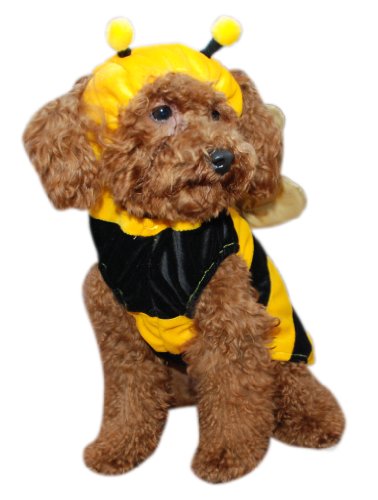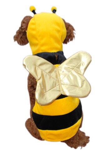 One piece bumble bee dog costume with gold wings