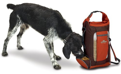 Keep everything you need to feed and water your dog on your travels in one convenient pack. This unique travel pack stores up to 1.5 liters of water and up to 8 pounds (3.6 kilograms) of kibble. No need to bring separate dog bowls—there’s a zip-off water or food bowl on one side and a food pour spout that doubles as feeding bowl on the other. You can always see how much water and food you have through frosted panels on the main on the main compartment. There’s even a front pocket to hold treats or the included shoulder strap. The refillable water reservoir has a convenient pour tube. A roll top bag closure keeps food fresh and dry and makes a great carrying handle. Convenient handles on either side make it easy to grab and pour food or water. Built for travel and safety with a rugged water-resistant and repellent pack shell, non-skid bottom and PVC free materials. One year limited warranty. Pack tested and approved by Cesar’s own pack at the Dog Psychology Center in Santa Clarita. Not for overnight water storage.