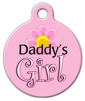 Our dog tags come in two sizes: Large (1.25″ diameter – about the size of a half dollar) and Small (7/8″ diameter – about the size of a nickel). The small tag is best for cats and little dogs while the large size is more suitable for medium and large dogs.