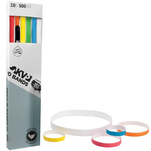 KVP ID Bands are soft and comfortable bands that are great for short or long term identification. Made of strong, spun-bonded olefin, they stay put when you need them to. The strong, pressure-sensitive adhesive becomes more permanent with increased pressure. Comes with a permanent marking pen to write on either side of the band. Bands fit most animals, but can be attached together for larger animals. 500 count packages.