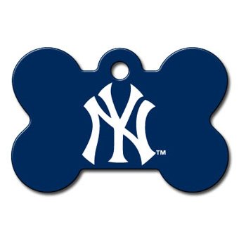 Quick-Tag New York Yankees MLB Bone Personalized Engraved Pet ID TagQuick-Tag New York Yankees MLB Bone Personalized Engraved Pet ID Tag is a must have for every pet. Not only is our Quick-Tag New York Yankees MLB Bone Personalized Engraved Pet ID Tag a great way to show team spirit but it is a crucial part of your pet’s safety. Officially licensed team logo is on one side and engraved personal information is located on the other side. Our personalized engraved pet ID tags help prevent lost pets while giving pet parents peace of mind. Even well trained pets can wander off or get lost and with our personalized engraved pet ID tags you can rest assured that your pet has proper identification for a quick and safe return. Our ID Tags can be engraved with up to four lines of personal information such as your pet’s name, your name, phone number and address. Help prevent your furry friend from getting lost with our engraved pet ID tag.