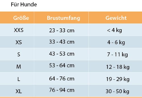 Size M for dogs 26 – 40 pounds and with a chese size of 18″ – 26″