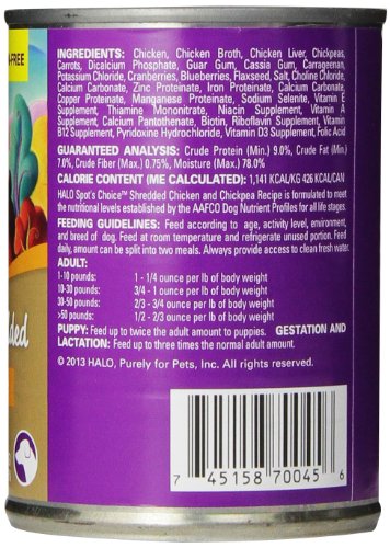 Ingredients: chicken, chicken broth, chicken liver, chickpeas, carrots, dicalcium phosphate, guar gum, cassia gum, carrageenan, potassium chloride, cranberries, blueberries, flaxseed, salt, choline chloride, calcium carbonate etc