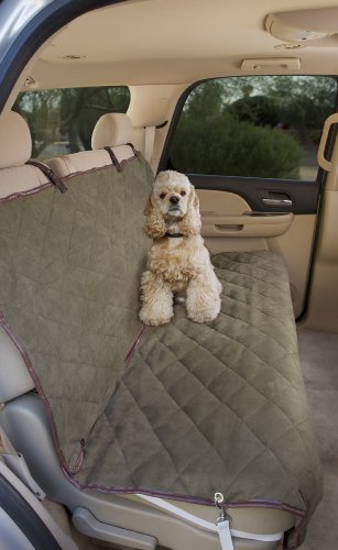 Made of heavy-duty microsuede protected with Stain-Block, this cover can take whatever he dishes out, then go right into the washing machine. It’s constructed for durability in every detail with vinyl bound edges and sturdy metal grommets and hardware. Quilted padding adds multiple layers of comfort and protection. Complete with a one-year warranty, it’s destined to give you and your pet many hours of happy traveling.