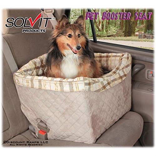 Solvit On-Seat Pet Booster Seat provides front and rear car seat security and comfort for your traveling pets.