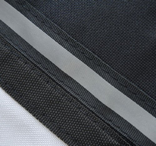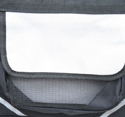 For extra security it comes with two straps with buckles, a reflective strip that goes around the front and an inner holder that can latch onto a dog leash to keep it inside