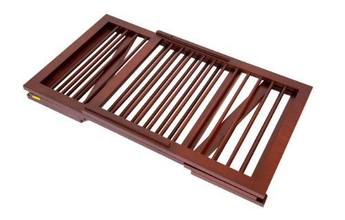 At Primetime Petz, we believe you no longer have to sacrifice your home’s style and elegance in order to enjoy the rewards of pet ownership. This elegant, furniture-quality gate utilizes slide technology which lets the pet owner precisely adjust span down to the exact millimeter for a custom fit. Don’t buy multiple gates; the slide gate is the answer for all your doorways and openings. Spanning from 28 inches, the size of an average doorway, up to 80 inches this gate covers wide openings. Extended feet prevent tipping and allow for superior stability even with the most energetic of dogs. Revolutionary feet also retract for versatile placement against walls or furniture which allows your pet to be contained form either side of the gate. This gate is 22 inches high and is rated for small to medium sized pets. Finished by hand in a gorgeous Walnut, this gate is lightweight for quick and easy relocation and folds down in seconds for simple, convenient storage. Add a stunning compliment to your home’s existing décor while safely and effectively providing containment for your beloved pet.
