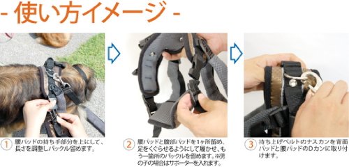 For older, injured or invalid dogs, the CareLift lifting harness provides a convenient and safe way to improve pet’s mobility. The unique design of the rear section lifts dogs from both the hips and abdomen, resulting in less stress than similar devices which lift only from either the legs or abdomen. There’s also a specially-shaped protector panel under the abdomen for male dogs (can be removed for females). Using the Rear-Only version, pets can be lifted using the adjustable leash or the rubberized handle. The CareLift is excellent for assisting pets up stairs, into vehicles, onto furniture, outside for a bathroom break, or to provide some assistance when taking a walk. Perfect for rehabilitation of dogs after injury or surgery. Available in two adjustable sizes to fits most any dog comfortably – Medium size fits dogs from 35-70 lbs and Large size fits dogs from 70–130 lbs. Refer to our sizing chart to determine best fit. One-year warranty included. Patent pending. Imported.