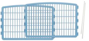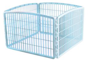 IRIS exercise & containment pens are ideal for play, exercise or training, indoors or out. Made in the USA of durable, heavy-duty molded plastic, they’ll last for years and will never rust. Recommended for puppies and small-to-medium sized pets. The panels interlock securely with full-length connecting rods, and the pens can be positioned in different shapes depending on your space. Light weight and easy to assemble and disassemble for transport or storage. Each panel features non-skid rubber feet to protect your floors. Both sizes of pens are available in white, blue and pink. Also available: 2-panel add-on kits.
